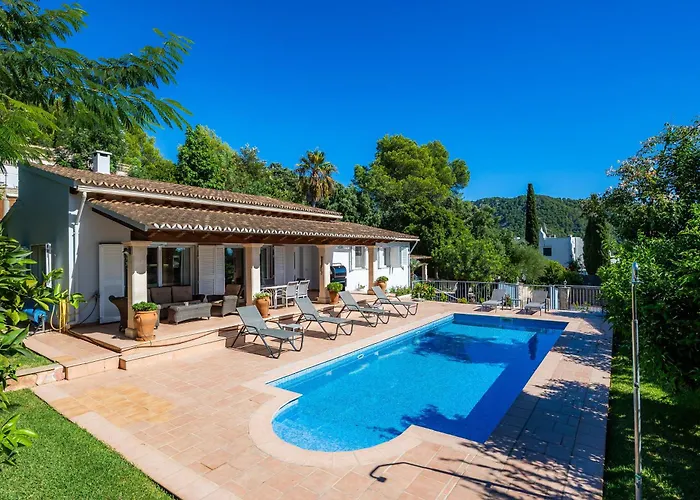 Villa Victoria Crestatx med 4 sovrum, som ligger ungefär 10 minuters bilresa från Campanets grottor, erbjuder utomhusbassäng och uteplats för gästerna.